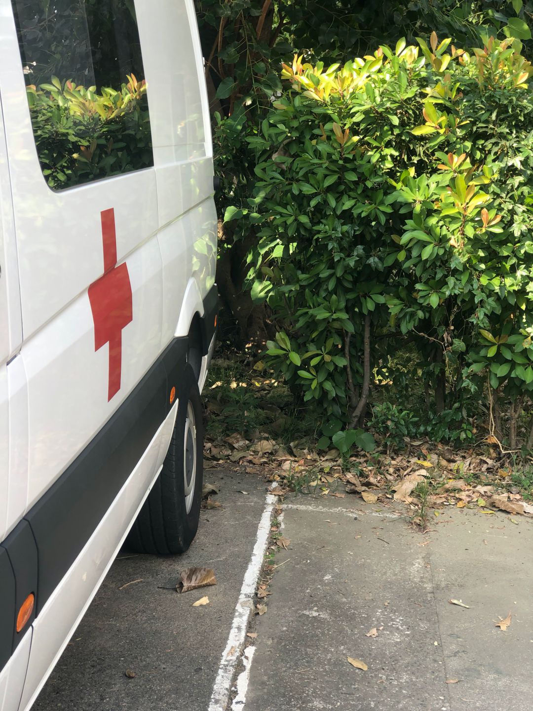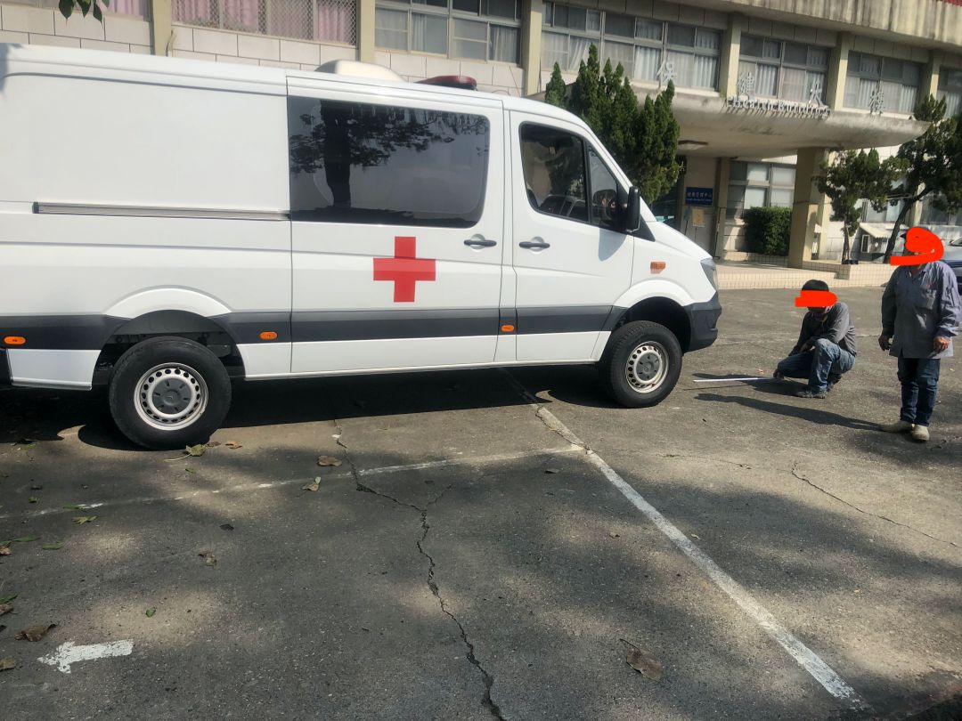 要停的車是救護車,高度有比較高,還有留一間空間,免得改天有新車種,高度又增高,這次滴水,最低處,是留三米,車子最後完成停進去,起碼還有五十公分的空間。