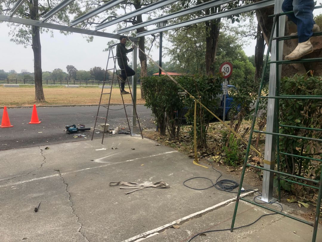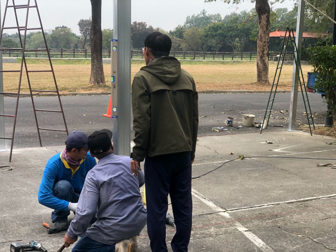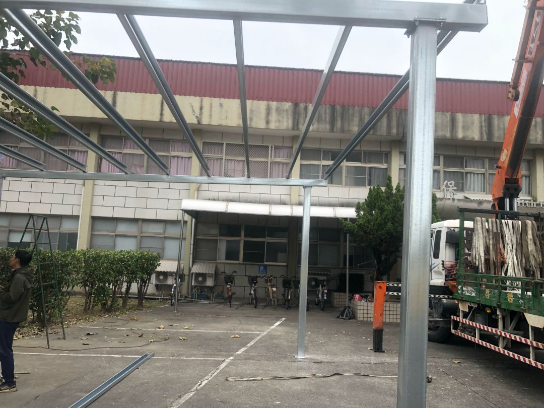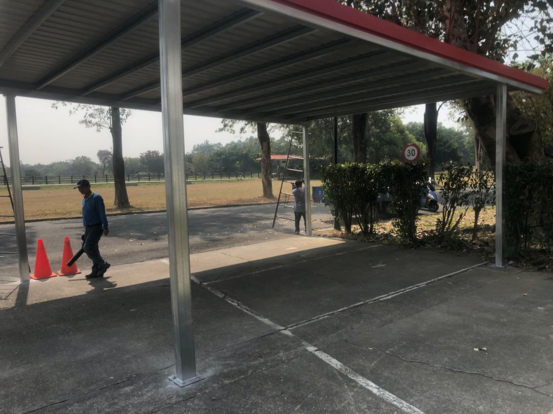 公家機關,又比較注重保密,雖然是教育單位,但也是有管制,加上只是做兩台車的停車棚,所以照片也沒很多。