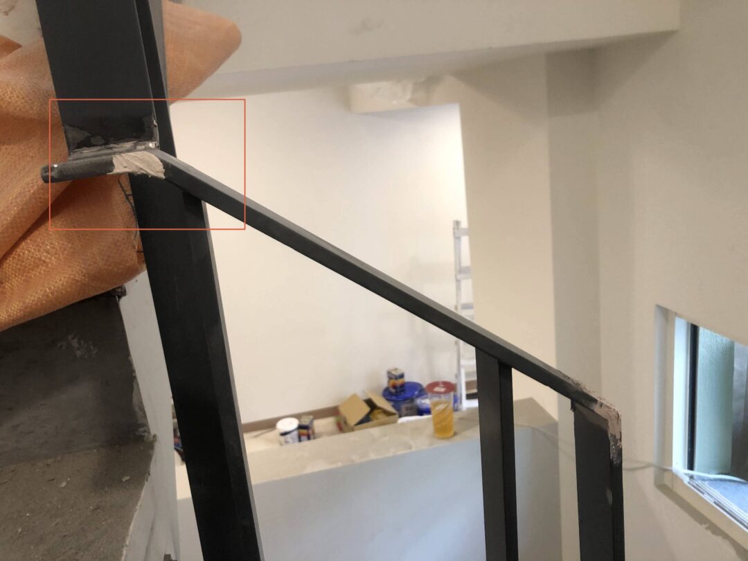 上圖就是現場焊接後,需要補土補漆,讓完成面比較順,不會刮人,安全問題。