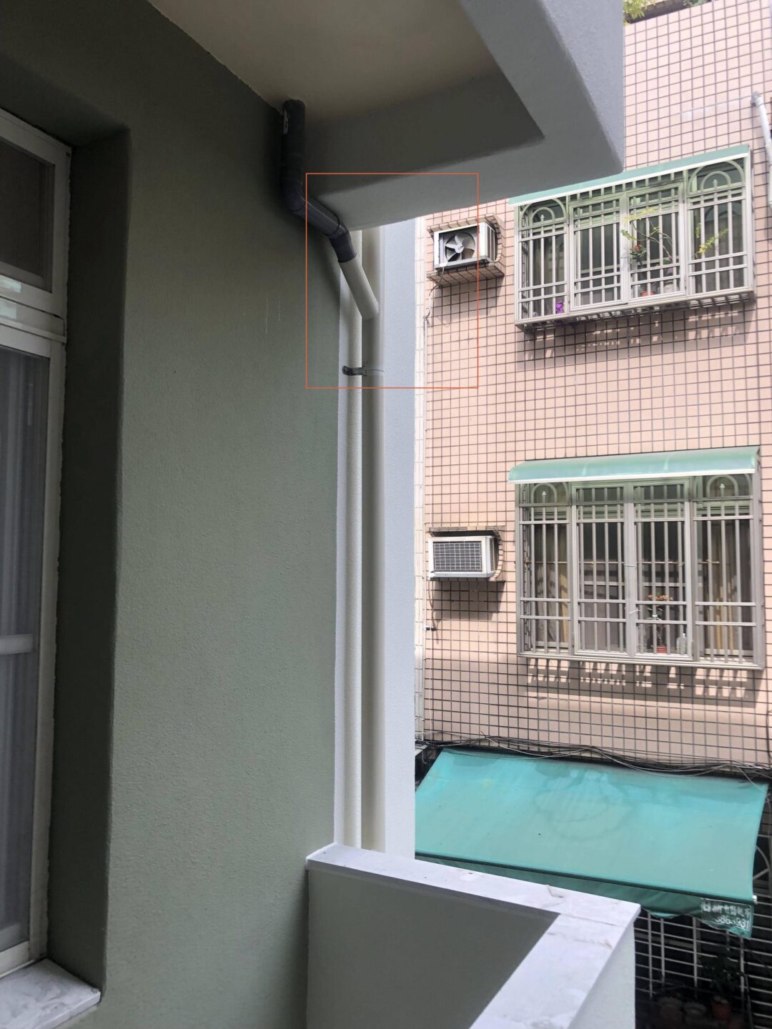 冷氣排水口設計,上面的是套件,可以跟陽台排水共用。